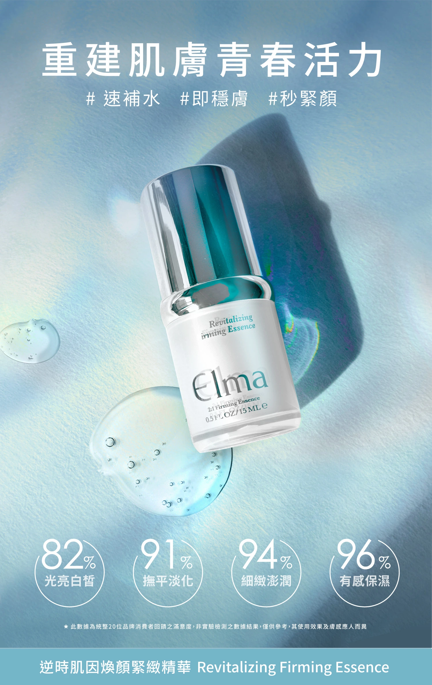 ✧ 4大保濕成分x2大修護成分,為肌膚瞬效補水保濕、緊緻修護、恢復肌膚彈力;質地潤澤與清爽倂存,任何膚質及季節皆適用。