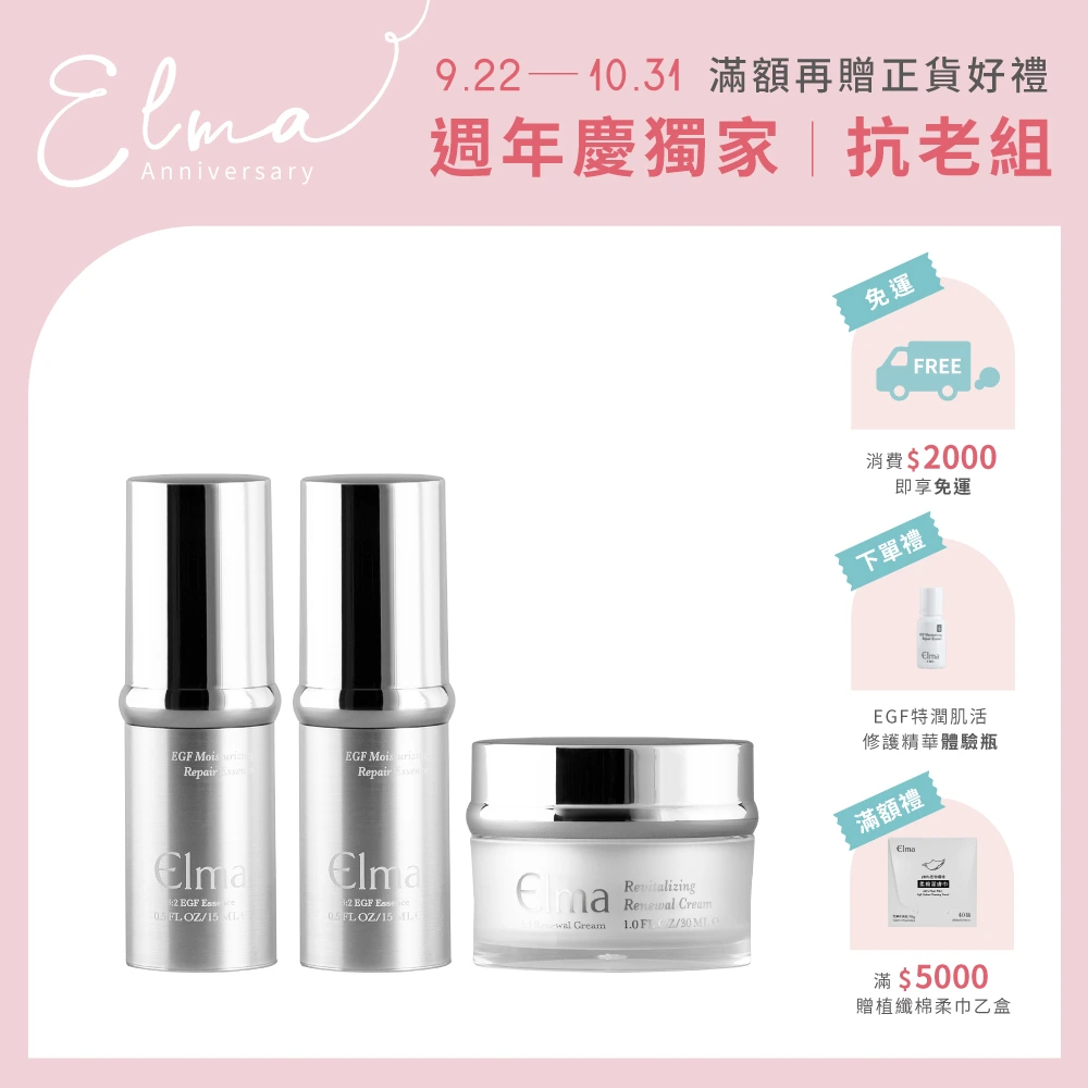 【緊緻撫紋重量組】EGF抗痕精華15mlx2+逆時活膚霜30mlx1